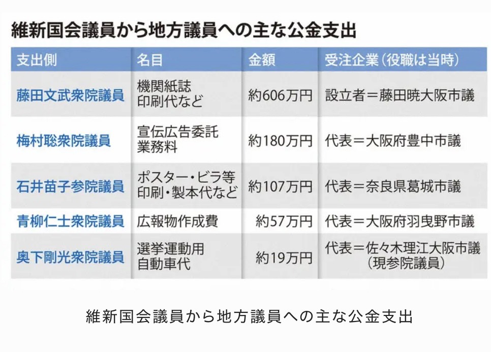 維新内では他にも、党本部や堺市議団、大阪市議などがこの会社を利用していた。